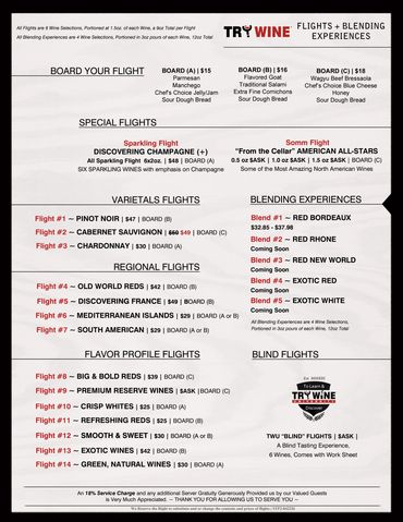 Experience a curated selection of (6) six 1.5oz pours of premium wines from renowned Vineyards and Winemakers from around the Wine producing World, professionally designed Expert-guided tastings with optional Food pairings to elevate your palate, all presented in a relaxed, elegant atmosphere to sip and discover a new favorite Wine all while you learn more about a Varietal, Region, or Flavor Profile.